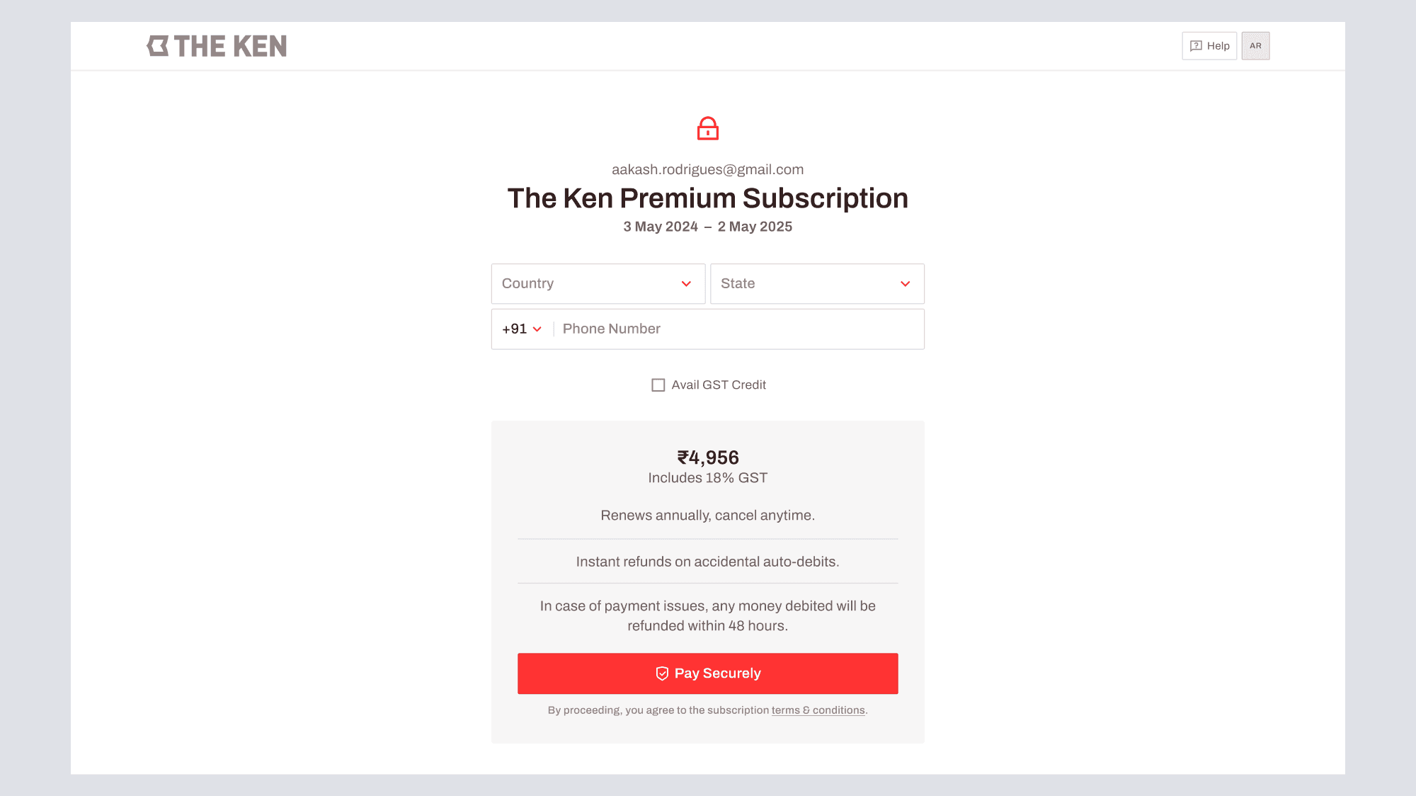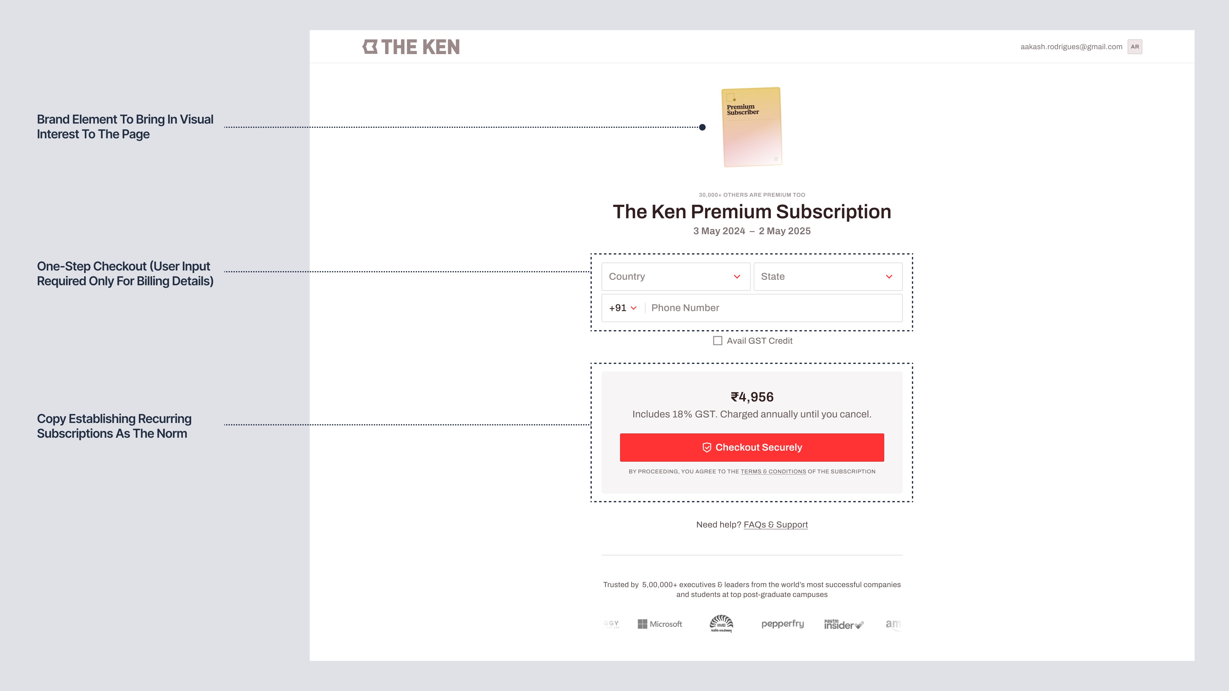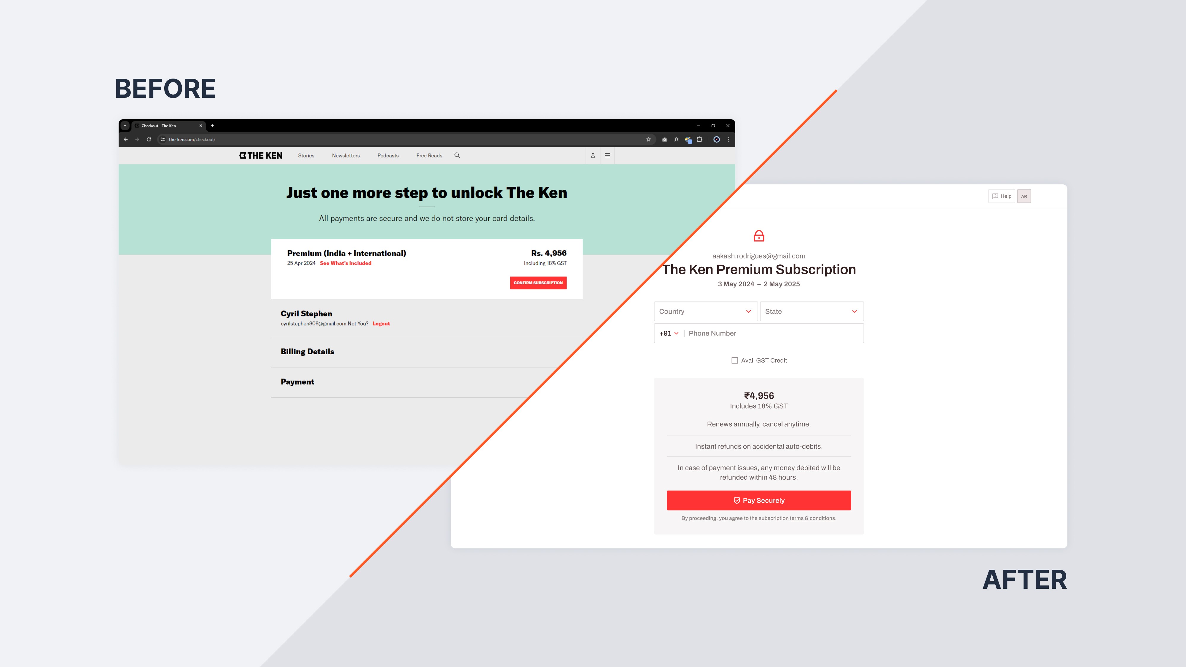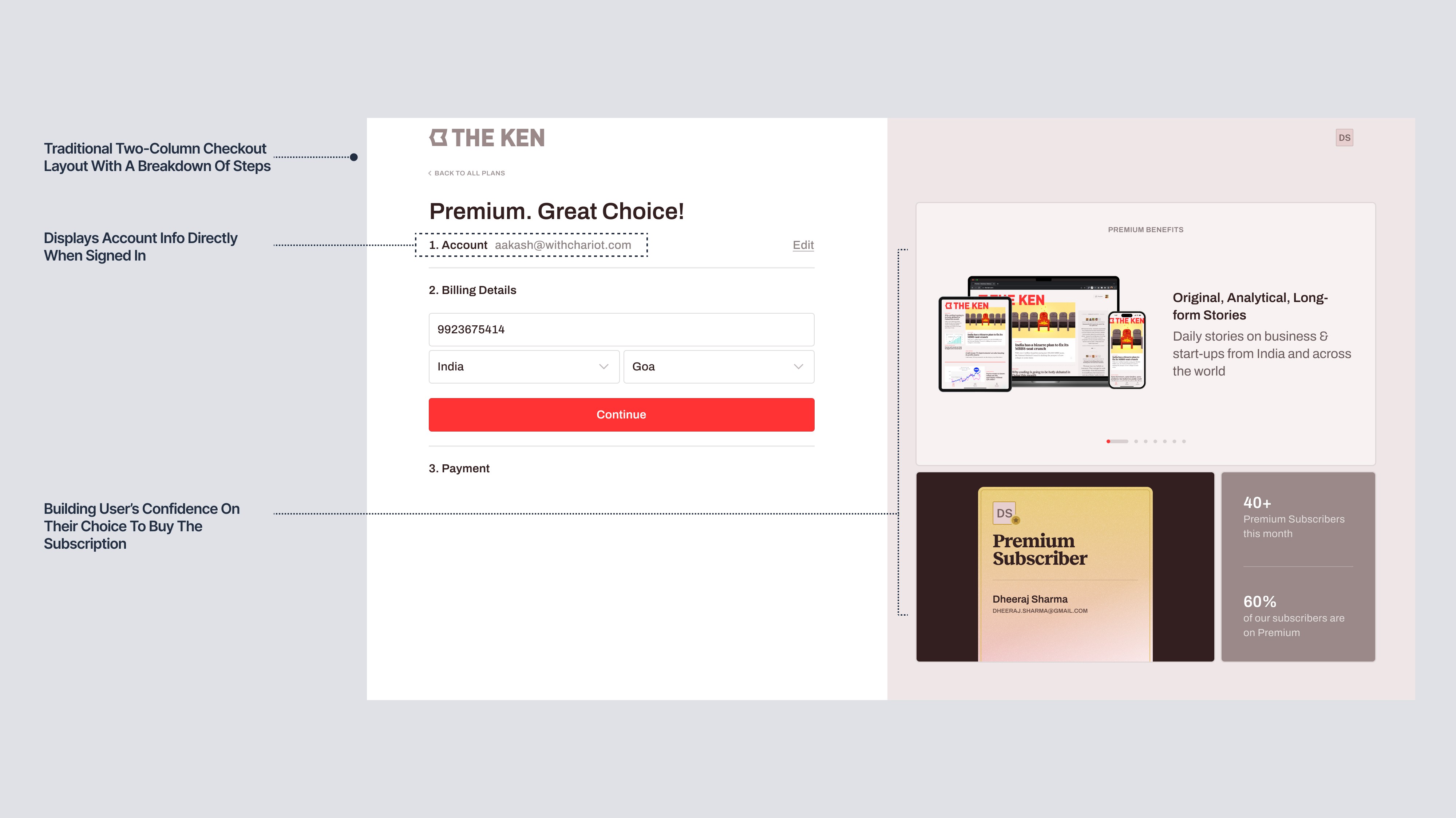 For readers of The Ken, the checkout presented usability issues - efficiency in particular.=